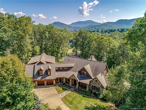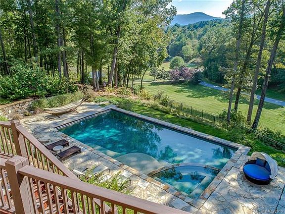 Architecturally inspired by the Blue Ridge mountains luxury home captivates views with stunning design. Foyer opens to great room w/soaring ceilings/stone fireplace and formal dining room. Chef inspired kitchen is open to breakfast room. Views abound from main level outdoor living areas; screened in porch, expansive wrap around deck w/outdoor kitchen/entertainment bar. Grand outdoor entertaining/relaxing year round with custom pool/hot tub new in 2017. Family/friends will enjoy the mountain estate with private areas for all. Main level master bedroom suite is truly a sanctuary for owners; large master bath, two large closets, dressing area, morning kitchen and exterior private deck. Two private bedroom suites, loft, study and a state of the art gym are situated on the upper level of home. Family room, bedroom suite, workshop and ample storage areas, complete lower level. Car enthusiasts will love, 9 car main level garage and lower level single car garage. Asheville-14 miles away.
