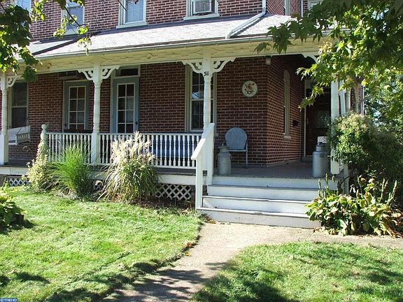 Victorian, vintage charmer! Nestled on a less traveled, Harleysville, side street, this solid brick, twin home has so much to offer! The covered, wraparound, front porch is ideal for your morning cup or afternoon siesta. Inside you'll find rich, original wood trim and casings, pumpkin pine floors, transom windows, spacious rooms and a place for all your things. The home has many quality improvements including Composite 50 year Shingles (2008), oil heater (2005), replacement windows, and well pump (2007). Out back you can enjoy the private yard from the rear deck and meditate to the trickle of the water feature. The large fenced yard is perfect for gardening, entertaining, and play. A detached, modified, carriage house/barn serves as an over-sized 2 car garage, workshop, & shed, while providing a quaint back drop for the landscape. Ready for your decor and finishes, this quality built & conveniently located home could become your forever retreat!