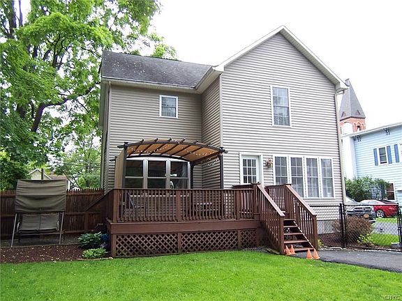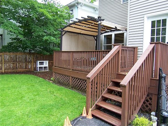 Absolutely gorgeous, beautifully updated Colonial built in 2000! Three large bedrooms with walk-in closets, 2 1/2 baths, spacious living room with adjacent play room or office and a formal dining room. Finished basement has family room with cabinetry that houses a wine refrigerator and mini-refrigerator for entertaining, office or exercise room too! Central air. Fenced rear yard and 2 car detached garage. Rear covered deck!