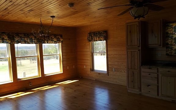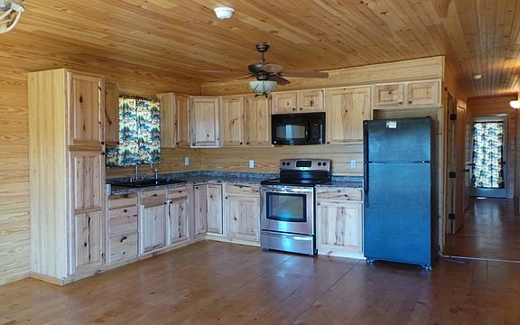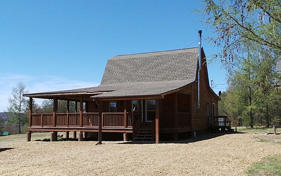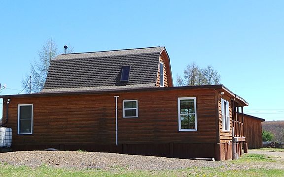 Custom built seasonal lodge on level .82 acre lot. Large kitchen with sliders to wraparound porch. Living room has 22' vaulted ceiling and curved stairs to the loft bedroom. First floor bedroom and bath. Wood floors, walls and ceilings throughout. Large windows to enjoy the beautiful Elk everyone is always talking about! Pavilion w/electric is great for entertaining. Hobby shed w/2nd floor storage.