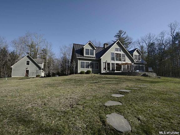 Never before offered for sale, 311 Buck Road is the rarest of Stone Ridge properties. Sited on 44 private acres on one of Ulster County's most sought-after roads, and just a few minutes outside of town, this magnificent property offers the finest of country living. With a view over Roosa Pond to High Point Mountain, the home, with classic lines on the exterior, offers a contemporary floor plan that's suited to today's casual living. A soaring stone fireplace and a wall of windows to the view anchor the double-height living room, and French doors open to the bluestone patio and heated gunite pool beyond. The roomy kitchen's custom cherry cabinetry and Pietra Cardoza countertops offer copious amounts of storage and prep space, and the adjacent dining room can comfortably host a large dinner party. There's a library with more custom woodwork that's hidden behind a set of pocket doors, and the large first-floor guest suite faces the outdoor magic with lots more windows and plenty of natural light. The master suite on the second floor features cathedral ceilings and a Juliette balcony, as well as a large walk-in closet and crisp, modern bathroom with limestone floors, glass-walled shower and extra-deep soaking tub. The third bedroom is also ensuite and is plenty large. The pond, most of which sits within the bounds of this property, is home to migratory water fowl, including eagles, ducks and heron, and for the fisherman or fisherwoman, there's large mouth bass, pickerel and more, and the Kripplebush Creek is here too. The two-car garage has an unfinished second floor with roughed-in plumbing, and there's a back-up generator in case of a power outage. There's really nothing left to do here - the proud owners have created their dream oasis and are now ready to pass it on to its next custodian.
