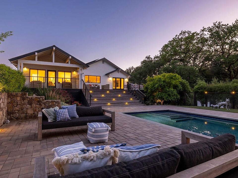 Welcome to 311 Burgundy Road, a stunning 4BD/3.5BA modern retreat on 1.3 acres in Healdsburg. This 4,435 sq ft home was extensively remodeled with high-end finishes, energy efficiency, and fire safety in mind. Highlights include a spacious office, media room, and a flex space perfect for a gym or guest room. The expansive great room boasts vaulted ceilings, cherry built-ins, and a 60' layout that flows seamlessly into a chef's kitchen with Azul Bahia granite, SubZero and Wolf appliances, and a 13' island. The main level hosts two en suite bedrooms, including a luxurious primary suite with private deck access and spa-like bath. Downstairs offers two more bedrooms, a full bath, media room, and separate entrance. Outdoors, enjoy Ipe wood decking, an in-ground pool, fruit trees, garden beds, and a peaceful seasonal creek. Tech-forward features include solar panels, EV-ready garage, dual-zone HVAC, Nest thermostats, and wired internet throughout. A rare Healdsburg gem with space to enjoy, but all the conveniences of being within city limits!