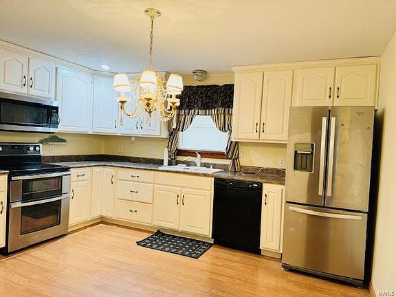 So many details to appreciate in this affordable home! LARGE lot! with newer roof (2020) HVAC (2021) Water Heater (2023) updated windows, newer stainless appliances, fireplace and 1 car garage. The kitchen is SPACIOUS and features a lighted built in hutch. Bedrooms have wood floors. Outside you will enjoy the patio AND deck with enough yard for a baseball game! Move in ready! Refrigerator, washer and dryer all stay.