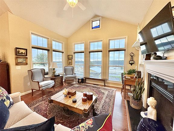 Like-new condo w/ many recent updates! Overlooking the Grafton Marina & beautiful river views, plus the CORNER LOT offers side windows that most of the units do not. No stairs to enter this unit, walk-in at street level + 2-car garage. Main level offers a large laundry + utility room, 2 bedrooms w/ brand new hardwood floors, oversized full bath w/ DBL vanity & walk-in shower, open floor plan, spacious living room w/ wood burning fireplace, dining room, kitchen w/ granite countertops, new stainless appliances included, DBL-door pantry & composite deck off kitchen. The loft is perfect for primary bedroom suite w/ walk-in closet & full bath w/ separate tub & shower. Windows have been professionally tinted, blocking 97% of UV rays to protect furniture & flooring + adding privacy. Other recent updates include: Furnace & AC new in 2023, new carpeting on stairs & upper level, freshly painted walls & ceiling, new light fixtures.
