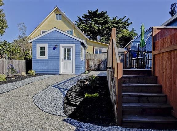 With views of the Monterey Bay and the city's unique skyline from the roof top deck over the garage, this historic and remodeled bungalow is Pacific Grove 2.0. Property features include: open floor plan, modern kitchen with quartz counters, maple soft-close cabinets & SS appliances, two spacious bathrooms, laminate and tile floors throughout, indoor laundry, front porch, large deck, fully fenced yard and an accessory building perfect for a separate home office, workshop, art studio or extra storage. The included 6 person spa/hot tub is a great place to sit, unwind and enjoy the outdoors. Just a few blocks from the many downtown parklets to enjoy outdoor dining, Grove Market, shops, the beach at Lovers Point and the Recreation Trail. Blue Water Views + Remodeled + Location = the perfect vacation getaway or primary residence.