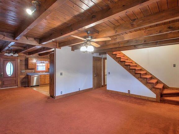 BEAUTIFUL CUSTOM LOG CABIN. PRIVATE AND SECLUDED. WILDLIFE! ROCKING CHAIR FRONT PORCH. MASTER ON MAIN LEVEL. FULL UFINISHED BASEMENT COULD BE FINISHED FOR ADDITIONAL SPACE. HARDWOOD FLOORS. Hot Tub and Pool Table can stay.