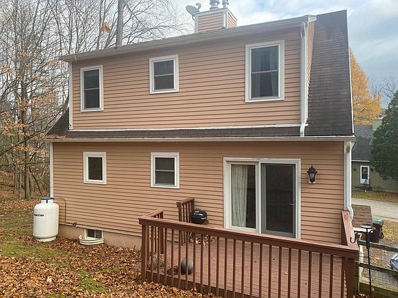 Listen to the brook as you relax in this 3 bedroom, 2 and half bath cape with a private back deck. Offering large living room, kitchen with breakfast bar, large living room with gas fireplace and downstairs den/office that could have multiple uses. Includes basement garage. Well kept and ready to go.