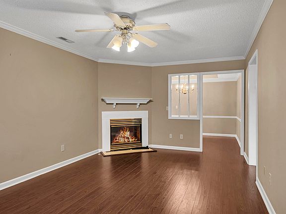 - LIVING ROOM DESC: Carpet, Fireplace, Crown Mold, Ceiling Fan