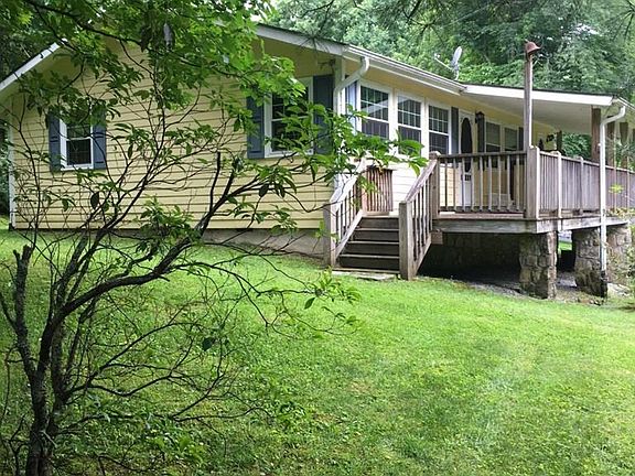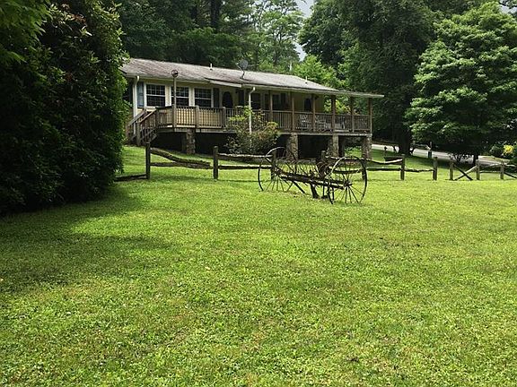 What a sweet little cottage and only 5.3 miles to Main Street, Highlands, NC. This home is all on one easy level with paved access to the driveway. Relax on the covered porch, or enjoy the coziness of the paneled living area, either way, there's a lot to love with this property. The way the house is set on the 1.58 +/- lot, it appears that it would be easy enough to add another structure or add on to this property, but for now, the 'extra' part of the lot is wooded. (Buyers would need to check with the building department of Macon County to enquire about building and/or permits.) There are two bedrooms with two full baths and a large eat-in kitchen, and nice size living area, and the furnishings there are included. Don't let this one slip away. This home is close to hiking trails and has a nice, gently rolling yard. There is a crawl space that can be used for storage, and the stone-faced pillars add an estate feeling. This is the place you have been dreaming about. Live in it like it is, or remodel, add some outdoor living spaces and enjoy!