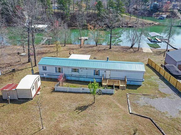 Panoramic Smith Lake views on this beautiful unrestricted lot with rare gentle slope to the water! Spacious home, covered porch overlooking the lake, storage shed (50 amp breaker for a camper on side of shed) and pier leading to seasonal water. Brand new front deck, fenced in area, new metal roof, wood burning fireplace & updated waterproof flooring. Cozy kitchen with plenty of cabinetry open to living room for easy entertaining. Primary bath has clawfoot tub, double sinks, separate shower and wooden feature wall. Huge yard with mature trees and peaceful views onto the water. Don't miss out on this special opportunity to own lakefront!