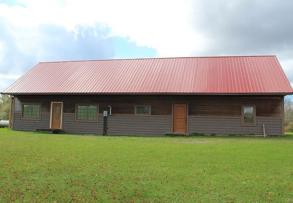 This 3 BR, 1 BA, 1144 sq ft ranch home located in the heart of snow country. Currently used as a snowmobile camp, this home has 5 acres of land w/ a pond, 2 barns, insulated 2 bay garage, lg open LR/DR/Kit floor plan. Home has pellet stove, new furnace, w/ central ac, full basement w/ room to store all your snowmobile gear plus area to change in. Home has new roof w/ all new trusses and 2nd story deck. Upstairs is ready to turn into a living w/ new insulation and lumber to help you complete the project if you wanted to!. Home can be used year-round or as a camp. Home will be sold partially furnished.