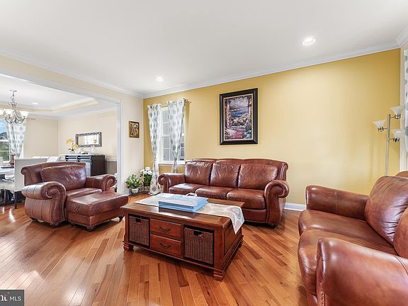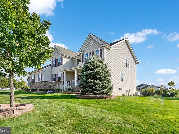 Welcome to your dream home in the prestigious Estates at Bordens Crossing! This stunning 4-bedroom, 3-bathroom residence, nestled on a half-acre lot, is a former builder's model with upgrades throughout! This North facing residence exudes elegance and modern comforts. As you approach, you'll be captivated by the beautiful landscaping and striking stone wainscoting. Step inside to discover a grand foyer with soaring ceilings, crown molding, and gleaming hardwood floors that flow throughout the home. The spacious formal living and dining rooms are perfect for entertaining, while the updated gourmet kitchen is a chef’s delight, featuring new cabinets, granite countertops, stainless steel appliances, a center island, and a large pantry. The inviting family room, adorned with a two-story ceiling and a cozy gas fireplace, is ideal for gatherings. An office on the first floor can easily function as a guest room. Laundry room and a full bathroom are conveniently located on the 1st floor! Upstairs, double doors open to the expansive primary suite, complete with a sitting area and a massive custom closet. The luxurious primary bathroom boasts a soaking tub, a large shower, and dual sinks, offering a serene retreat. Three additional generously sized bedrooms and a well-appointed hallway bath complete the second floor. Step into the sunroom (added on 4 years ago), which leads to a new deck perfect for outdoor entertaining or simply enjoying the tranquility of your fenced backyard, complete with a garden and shed. The full-size daylight basement offers endless potential for customization. This energy-efficient home comes with owned solar panels, updated dual-zone heating and cooling (both furnaces and both air conditioners which were replaced 3 years ago), recessed lighting throughout, an Electric Car Outlet in the garage, and a lawn sprinkler system. Further features include a Generac 10KWH generator, security system, and easy access to bike paths and major highways. This home offers both convenience and peace of mind! Don't miss your chance to experience the perfect blend of elegance and modern living in this remarkable home!