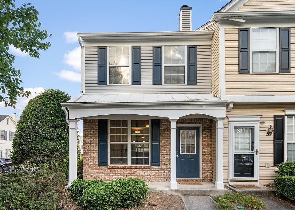 Welcome to this bright and airy end-unit townhome in the Devonshire neighborhood just minutes from GA-400, Avalon, and downtown Alpharetta, you'll enjoy easy access to great shopping, fine dining, and award-winning parks, all within a highly desirable school district. Step inside to find 9-foot ceilings, crown molding, and Luxury Vinyl Plank flooring throughout the home. The spacious kitchen features Quartz countertops, a subway tile backsplash, a breakfast bar, and newer stainless steel appliances (2021), including a brand new natural gas oven/range (2025). The open-concept floor plan flows effortlessly into the living area with a cozy gas-starter fireplace perfect for relaxing or entertaining. Upstairs offers two generously sized bedrooms, en-suite bathrooms, and vaulted ceilings. Laundry is conveniently located upstairs. The home is filled with thoughtful upgrades including a new AC (2021), new roof (2021), new hot water heater (2024), modern light fixtures, new ceiling fans, and a Nest keyless entry system. Enjoy your morning coffee on the charming front porch or take advantage of the community's low HOA ($165/month) that includes swim and tennis amenities. With two reserved parking spaces in front, and guest parking in the rear, this home checks all the boxes. Don't miss your opportunity to own this beautifully updated and well-located home in one of Alpharetta's most sought-after areas!