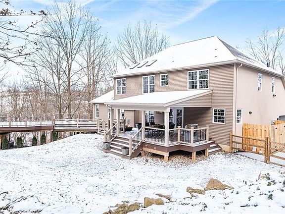 Absolutely Gorgeous! Privacy Galore on 5.12 Wooded Acres! Set up for outdoor entertaining with enormous multi level Trex deck and oversized covered patio. Fenced in back yard. Custom Built Home in Mars School district. Dramatic 2 story open Foyer, large gourmet eat-in Kitchen features an oversized island. Beautiful cabinetry, granite countertops, designer backsplash, stainless steel appliances, Reverse Osmosis drinking water system, ceramic flooring, pantry, crown molding & recessed lighting. Impressive 2 story Great Room features sky lights, fireplace & a wall of windows. Gas fireplace. 1st floor Master Bedroom, His & Her walk-in closets, and stunning En Suite. 1st floor Office, 1st floor Laundry Room, attached garage with drop zone, HUGE finished walk-out Gameroom w/full bath, Movie Theater, 2 large storage areas. 2 car garage. *BONUS* - PUBLIC WATER & SEWER. Bonus - 2nd fenced in yard with stone path and chicken coop!