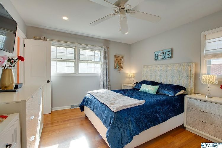 This Fully renovated home, located in the heart of Huntsville, features hardwood and tile through out, beautiful grey cabinets, no touch kitchen faucet, double oven, and granite counter tops! Enjoy movie nights on a 110" screen that, with a push of a button retracts from the ceiling! PLUS it has the hook up for surround sound! In addition, a two car garage in the back with second floor storage, this home has plenty of parking with access controlled by a brand new solar powered gate! Out back, the lights are smart lights on a timer, and if that's not enough there's a Nest thermostat smoke detector plus a Ring doorbell! You'll love the owners' suite tiled shower with two shower heads.