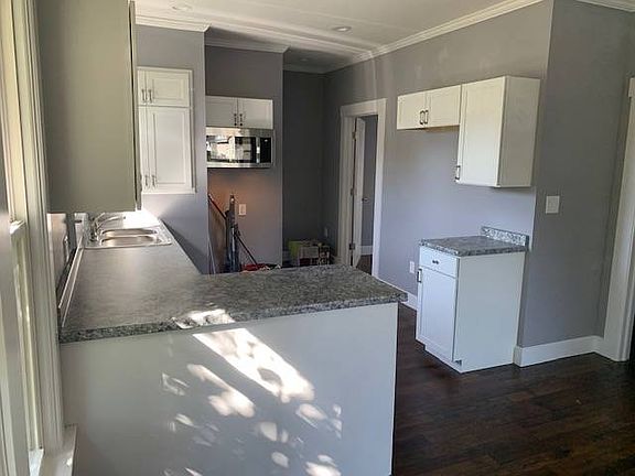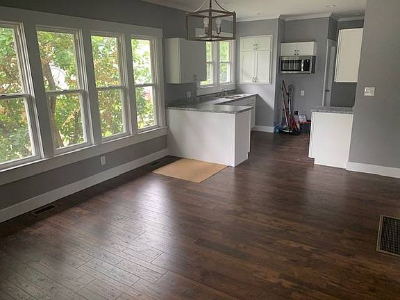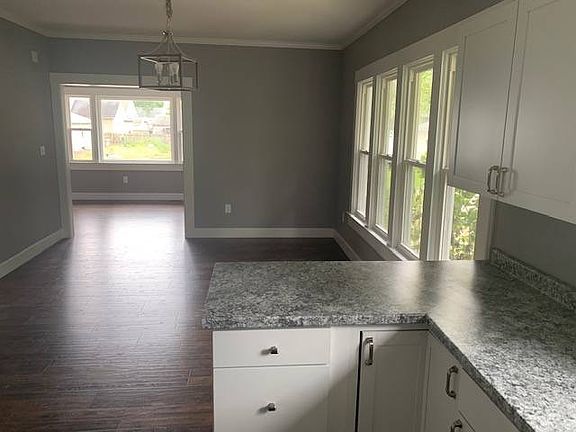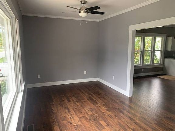 Living Room: New treated lumber stairs leads to living room. New drywall, new ceiling fan, new Pergo waterproof floor ($2.89 per square foot). South facing windows drench this room in sunlight. Dining Room: Spacious and open. New drywall, trim and a bank of windows with beautiful greenery. New Pergo waterproof floor continues, nice chandlier. Opens to the kitchen. Kitchen: New white cabinets, granite design on laminate countertop. Stainless steel sink and stainless steel microwave. Recessed can light. Bedroom: Continuous decor of new Pergo waterproof flooring, grey drywall, white trim, closet. Bath: All sparkling new white fixtures, extra storage, Pergo waterproof flooring, grey walls.This bath is insulated to reduce sound transmission. Bedroom: Continuous decor of grey walls, white trim and Pergo waterproof flooring. Basement: Open, dry, clean! Grey painted floor and walls, there is a hook up for washer/dryer in basement with a soaking sink. NEW PEX plumbing throughout. New wiring. New gas forced air and central air! Future expansion for more bedrooms in this dry basement. All new thermopane windows, even the basement. All new mechanicals. Roof is only 12 years old, with shingles rated for 30 year life. New water and PEX plumbing lines clear to the street. Miniblinds for all windows. Detached one car garage. You have everything here for many years of no maintenance living!!