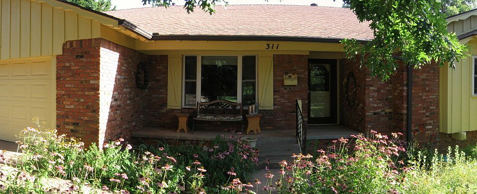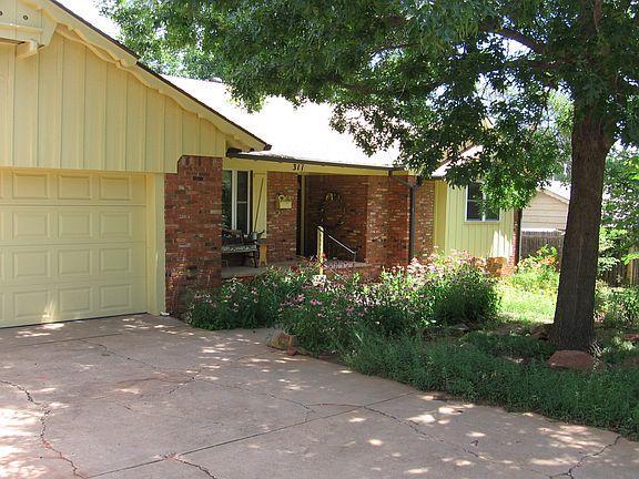 Great family home near the best Edmond schools. Free Edmond bus to downtown OKC and all of Edmond at the end of the block. Three bedroom, ranch style brick with interesting detail. Two car attached garage. Lots of storage in both garage and inside: Built-ins in hall, bathroom, and two bedrooms, walk in closet in hall plus regular hall closet and coat closet. Large built in china cabinet with storage below. Large pantry. Walnut pegged oak hardwood floor in family room, living room with big picture window overlooking flower garden in front. Kitchen renovated with tile floor, quartz cabinet top, tiled back splashes with floral detail, double oven new six years ago, and six burner gas cook top. Wooded creek nearby, nice oak, pecan, redbud, peach, cherry trees on lot. Very private backyard, and great for birds. Vegetable garden area and lots of flowers! New high efficiency gas furnace, new air conditioner both installed 2010. Attic fan, sleep cool without high bills. Two hot water heaters, one for bathrooms (new 2012) and one for laundry/kitchen (installed 2002 but like new). New double pane thermal vinyl windows 2007. New roof 2012. New exterior paint 2012. Floored area in attic for storage. Extra deep attic insulation.