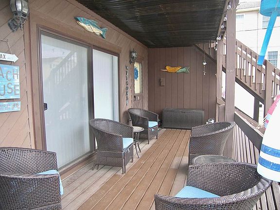 CLOSE TO BEACH & BOARDWALK WITH LARGE DECK! Situated just 1.5 blocks from the world famous Beach and Boardwalk of North Wildwood, this first floor corner condo has all the "I Want's" - it's modern and well maintained! The unit boasts a large and private deck for enjoying the outdoors. There is a spacious living area with laminate flooring that includes a living room with wood burning fireplace, dining area and modern kitchen with snack bar, granite countertops, stainless steel appliances and recessed lighting. There are two nice sized bedrooms (one of which has two queen beds) and a beautifully updated hall bath for your guests to enjoy in comfort. The master retreat has its own full bath with shower that has been updated, along with a large closet. With forced air heat and central air, you can use this unit year round. Two car parking is included for your convenience. The hot water heater is approx. 4 years old and the A/C is approx 2.5 years old. You'll appreciate the location too - within close proximity to fine and casual dining, shopping, ice cream parlors, miniature golf, etc. Some contents of the unit can be included with the sale, depending on Buyer's offer, as follows: 2 couches, 2 area rugs, bar stools, 2 queen beds in guest bedroom, window blinds and back storage shed. All other items not listed are specifically excluded from the sale. This is a small 4 unit condo complex. The current owners do not rent, but other similar units in the building are asking $2000/week rent for the prime season weeks. Easy to see - call today! ** Please note: Square footage was quoted from the tax records and should be verified by the Buyer prior to purchase. **