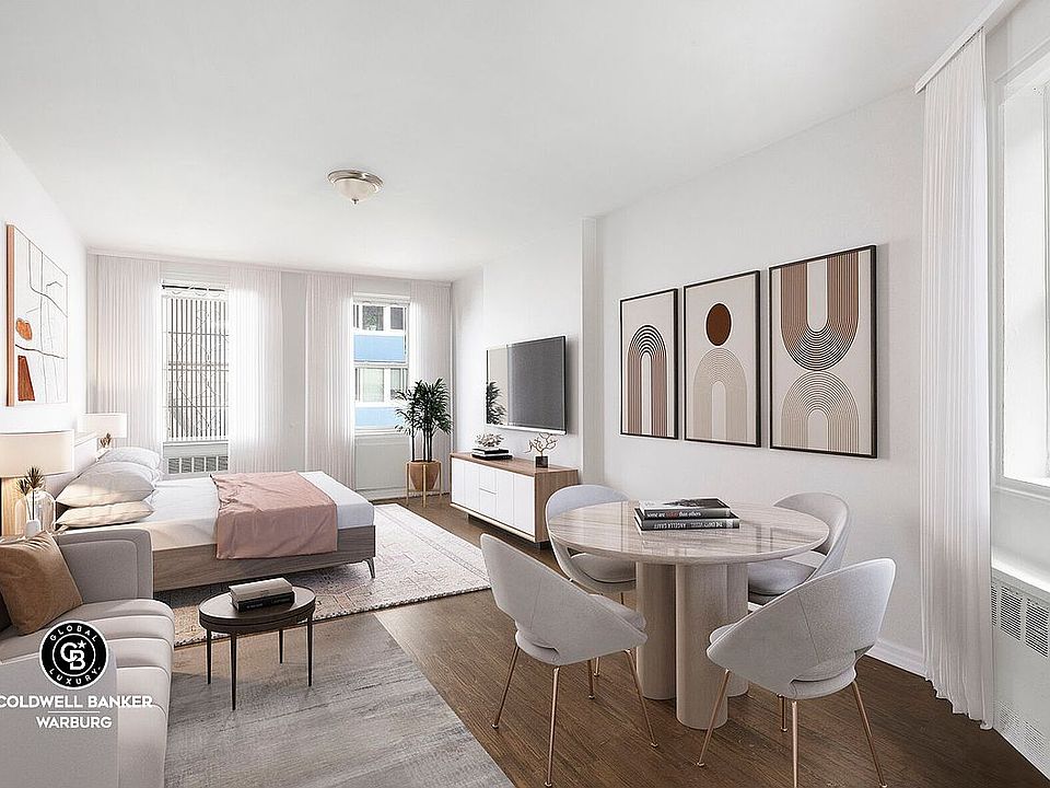 SPONSOR UNIT WITH NO BOARD APPROVAL. RENTING ALLOWED! Residence 3E is a charming, corner jewel box studio facing north and east. This exquisite apartment opens to a dramatic entry gallery, off which stems a row of closets and a renovated windowed bath. The renovated kitchen opens to the living area and can easily accommodate the addition of an island or bar. The airy, north facing living space can easily accommodate large scale bedroom furniture as well as a large seating / entertaining area and workstation. Newly refinished hardwood floors add a beautiful detail to this turn-key space. The Liberty at 311 East 25th Street is a beautiful boutique pre-war co-op building located at the crossroads of Gramercy Park and Kips Bay. An elevator services all floors of the impeccably maintained building. The tree lined neighborhood has easy access to transportation (6 Train – .3 mi; N/R/W – .5 mi) with a citibike station located directly outside, parks and outdoor recreation, educational and cultural institutions (one block from Baruch) and plentiful restaurants and nightlife. Additional $74.41 monthly assessment in place until 12/31/2022. SOME IMAGES ARE VIRTUALLY STAGED This is a co-exclusive with Reuveni.