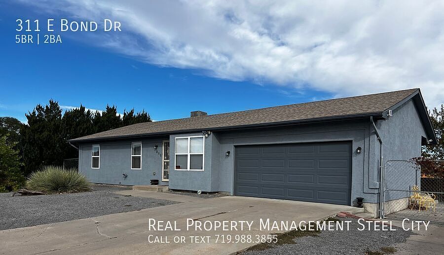 Welcome to this spacious five-bedroom home in Pueblo West, set on a corner lot with stunning mountain views on your drive home. This property features a huge, fully fenced yard with both front and backyards landscaped for easy maintenance. In the backyard, you'll find a playset and plenty of space for outdoor enjoyment. The oversized two-car garage offers ample room for parking and storage. Inside, the main level includes three bedrooms, with the primary suite offering a large walk-in closet and private bathroom. The finished basement provides two additional rooms, plus an expansive multi-purpose room perfect for a variety of uses. Enjoy the comfort and convenience this home has to offer! None
