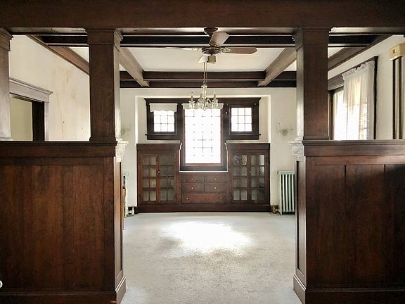 This 3 bedroom, 1 bath home has loads of character. The living room and dining room have beautiful original wood trim and built-in cabinets. There is a staircase for easy access to an attic that is great for storage or could be finished for additional living space. There is also an unfinished basement with laundry. Outside is a large covered front porch and a cozy back porch off of the kitchen. There is so much potential in this charming historic home.