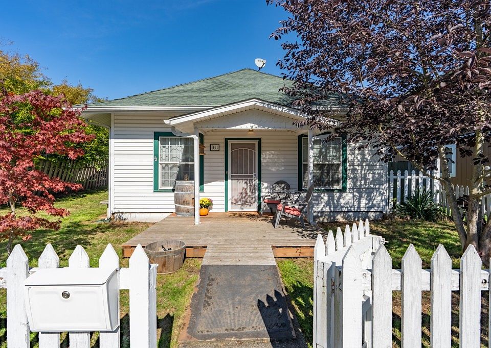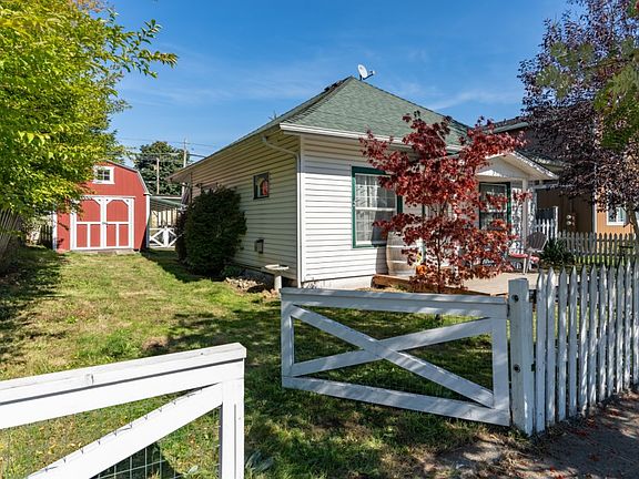 Charming country bungalow complete with white picket fence. Large kitchen with tile counters and back splash, vintage cabinets, farm house feel and cozy gas fireplace. Garage can be used as MIL or rental as it has guest room, loft, kitchen hook-up, bathroom and parking for one car. Large lot with adorable red barn workshop. Covered carport in alley could support two cars and an RV! Large deck off the kithcen, fully fenced yard. New stove and fridge! Walking distance to downtown Arlington.