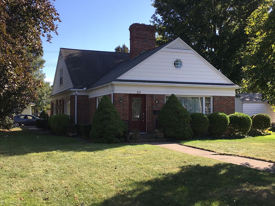 Very attractive 2,300 sq. ft. all brick 1 1/2 story bungalow home on double corner lot with nice mature trees. Lots of curb appeal. Located at: 311 E. Mechanic St. Wapakoneta, OH 45895. 4 Bedrooms (2 up, 2 down) and 2 1/2 Bathrooms. Partial basement is unfinished. Washer/Drier hookups and full bathroom in basement. Functional wood burning fireplace in basement as well. Eat in kitchen has ceramic tile flooring with built in glass faced china cabinet. Breezeway area is nice as 3 season room. Lots of closet space and walk in attic. Central air, newer exterior doors and windows. Grand stone fireplace (functional) in nice 22’ x 14’ living room. 2 car garage. Original custom crown molding thru out home. Gas heat and central air. Beautiful original wood flooring in all bedrooms, hallway and stairs. Remodeled bathroom on first floor. Newer natural gas furnace and water heater. Wapakoneta School District. Close to schools, parks, restaurants and downtown. Taxes are $1,550/Year