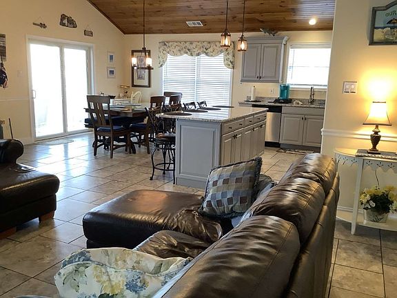 Exquisite Wildwood Top Level Four Bedroom, Two Full Bath Condominium.....in a building of only two units. Tastefully decorated and furnished, with an array of pretty seashore coastal furnishings and decor. This condominium has a private side covered entrance taking you to the little porch at the front door (there's even a bench). The entry area is enhanced with a beveled glass door, exterior lighting and well cared for stairways and landscaping. The "Great Room" floor plan combines a spectacular Cook's Delight Designer kitchen, living room and dining room, all enhanced with magnificent tile floors. There are two sets of sliders to the private wide open front deck, which is partially a covered deck. This living/dining/entertainment/gathering space is enhanced with a gorgeous wood ceiling, it's pretty amazing to view and to also feel the cozy atmosphere created with this tongue and groove vaulted ceiling. The kitchen cabinets are very attractive and enhanced with granite countertops. There are plenty of various sized cabinets and ample counter space. The kitchen center island has stools and lovely unique pendant lighting. All the lighting fixtures, ceiling fans, window treatments, floor coverings and wall decor are extraordinary and very personalized. The wide hallway leads to all four bedrooms, the hall laundry area and the pulldown stairs to a floored attic. There is so much to see as you go through the rooms: crown moulding, chair rail, stainless steel appliances in kitchen, beautiful wall color paint choices, porcelain tile, quality contemporary lighting fixtures and window treatments. The laundry area is one to step back and look at....there are sliding barn doors on tracks...something rare and a standout feature. The flooring, carpeting and tile choices were made carefully and you can tell....many soft seashore tones. The doors to the front deck have the built in slim blinds and the entire condominium features quality blinds and curtains. There is an ocean and beach view from the top deck. What a lovely master bedroom suite with lots of closet space and a stunning full bathroom. The main hall bath is stunning as well. This condo is being sold furnished and equipped as shown and has been a summer rental for a select clientele by the week. Obviously everyone has cared for this beach place.