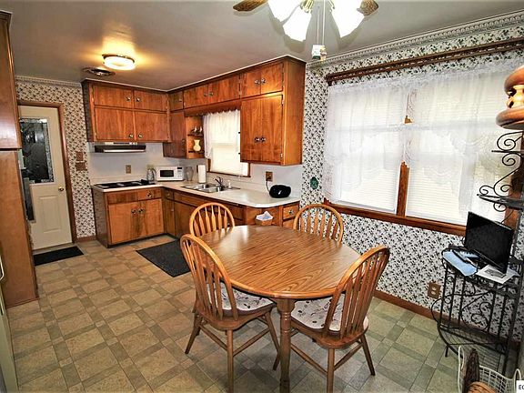 Well kept ranch home with newer metal roof, vinyl windows and siding. This home is very comfortable with eat in kitchen and good sized living room. The laundry room is a bonus which includes a shower, sink, closet and cabinet space. Two bedrooms on the main level and an attached garage. There is a full basement, lawn shed and off street parking off to the side of the driveway.