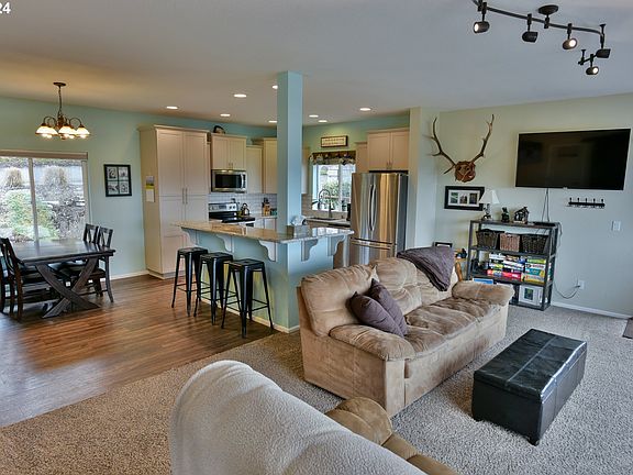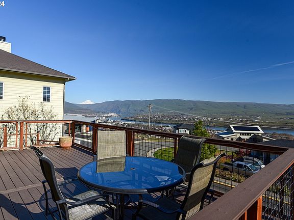 Expansive views of the Columbia River and Mt. Adams from this lovely home nestled into the hillside just below Sorosis Park. Large picture windows in the open concept living, kitchen and dining room take in the unobstructed views. Large step down deck to enjoy outdoor entertaining, does not block views from the inside. A den/4th bedroom and 1/2 bath finish out the first floor. Upstairs the Primary Bedrooms corner location takes in the mountain and river views, large walk in closet and double granite sink vanity in the bathroom make this bedroom a true retreat. 2 more bedrooms, a bath and laundry room complete the upstairs. Attached 2 car garage provides for additional storage. A fenced side yard that leads to a recessed fire pit area allows you to stay cozy and enjoy the views. This property is walking distance to Sorosis Park, Columbia Gorge Community College and the Readiness Center. A short drive to the marina for your water recreation, or to The Dalles Country Club for a quick 9 holes. Enjoy walking or biking along the Riverfront Trail. Dine at local breweries, wineries and riverfront bistros. Indoors and outdoor this property allows you to sit back, relax and enjoy the views after your busy day in the Columbia River Gorge.
