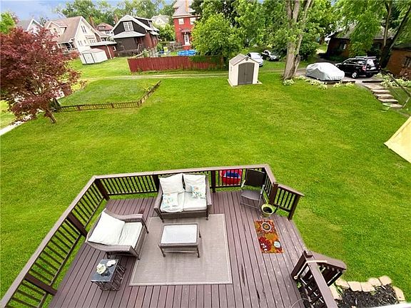 Classic charm meets modern chic in this beautifully updated 3bedroom/2bath 2-Story. You will be welcomed into the living room by a gorgeous ornamental stone fireplace. The charming dining room offers open concept dining to the living room and features a window seat. A fabulous kitchen remodel impresses with ample, modern white cabinetry, stainless appliances, granite look countertops and mosaic backsplash. All new flooring grace the first floor. The upstairs hosts 3 bedrooms and updated bath. A fully equipped first floor laundry/bathroom makes laundry a breeze. Outdoor entertaining will be a delight on the back deck overlooking a level yard. Other features include: Fresh paint throughout, replacement windows and glass block windows, updated electrical, hot water tank, balcony off upstairs bedroom, walk in closets in all bedrooms, covered front porch, dining room with window seat. An HSA Home warranty has been included to protect your investment.