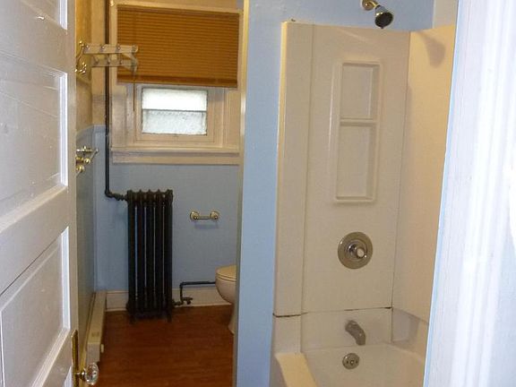 Brick 4 unit building with 1 garage space. 4- 1 bedroom apartments with a garage space. 1 is currently rented with long term tenant. Large yard, Roof replaced in 2018. Each unit has electric heat with a boiler that heats the entire building. Owner keeps heat at 50-60 degrees tenants use electric Baseboard to comfort. Rents are below market. All units are in good condition. Public Water, Sewer, Trash,