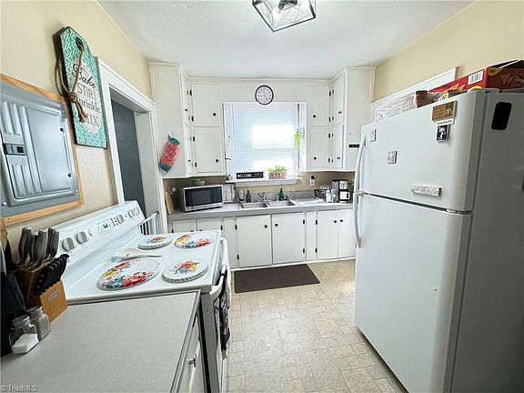This quaint cottage offers a delightful blend of charm and convenience. Step inside and be greeted by beautiful hardwood floors, a cozy living space, and two bedrooms. Enjoy the peace of mind that comes with replacement windows and a new roof. This property is perfect for those seeking a peaceful retreat or a lucrative investment opportunity. Just a short stroll from the vibrant shops and restaurants of Historic Downtown Elkin, you'll also have easy access to miles of hiking trails, the scenic river, and nearby pickleball courts. A deeded joint driveway agreement ensures hassle-free access. Don't miss this chance to own a piece of Elkin's charm!