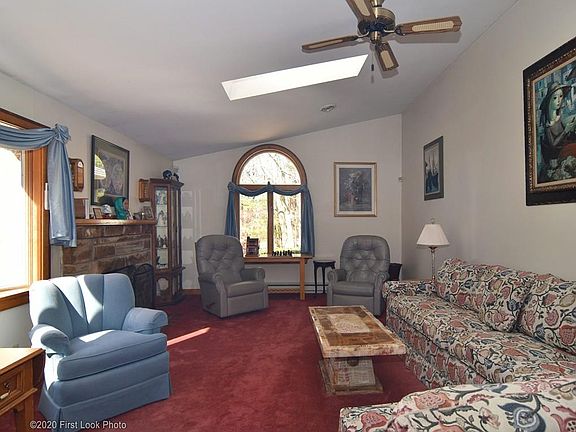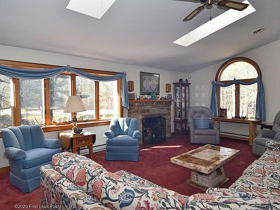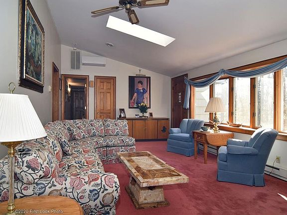 Sprawling ranch on 4.8 acres with a potential extra lot. One level living at its best with 2600 square ft. of space with 3 bedrooms, two full bathrooms! As you walk in the front door you see the living room that draws you in & makes you feel at home! Into the sitting room adjacent to the kitchen. The kitchen has a great space with an island and plenty of storage. This home also has a separate dining room. Head down the hall, you will find the 3 great sized bedrooms, an bathroom and the master suite! The home is surrounded with beautiful stone walls and landscape that makes this setting amazing. The home has a circular drive way that takes you to either of the garages or around back. This charming home has a garage under as well as an detached two car garage. See attached plans for 2 lot subdivision option.