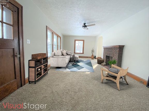 CHARACTER-FILLED, SPACIOUS, UPDATED! A front porch to love, double lot (0.3306 acres) to enjoy with family and friends, and updates to impress! Cheerful living room with a decorative fireplace and is open to the dining-room. Spacious kitchen with new drywall, cabinetry, countertops, stainless steel appliances that remain, and flooring. Sliding door off kitchen to patio for easy entertaining. Updated first floor full-bath and a separate large laundryrm with storage space. Five bedrooms (two without closets) accompany an amazing, updated hall full-bathroom featuring new tile, vanity, flooring, and lighting. Hall built-ins and original woodwork. Basement for storage. NEW roof, furnace, central air unit, floor coverings throughout, mostly all new replacement windows, light fixtures in many rooms, neutral color palette. One car detached garage. Make this your home today. Immediate possession!! (All information is approximate, dates, sqft, and room sizes) Virtually Staged