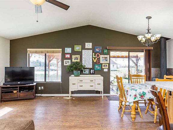 Located near schools, shopping, and amenities! This 3BD/2BA well-kept home features vaulted ceilings, wood-burning fireplace, central a/h, updated kitchen with stainless steel appliances, a laundry room, and hardwood floors in the entry and living areas. Relax on your outdoor patio area with established pergola, landscaping, trees, shrubs, and beautiful views of the Rubies. Home has an attached garage, as well as a 30X30 Shop! Backyard is fenced with an added separate fenced area for your pets!