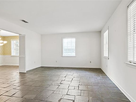 This home is located in a tranquil setting in River Ridge on a lovely tree-lined street. Five bedrooms, 3 1/2 baths. Natural stone flooring in foyer, living rm, dining rm, den, & primary bedroom. Huge downstairs game room/playroom. Baths and kitchen are dated - great opportunity to bring your own ideas to make this your forever home. Ample storage, 2-car attached garage, corner lot. New roof in 2021. Flood Zone X.