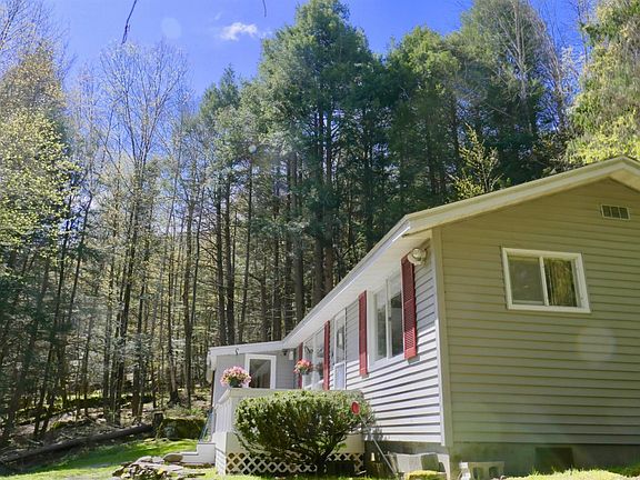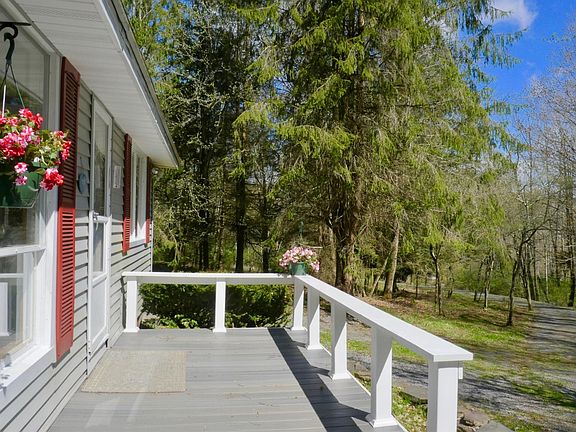 Charming, SECLUDED ranch on beautifully wooded 4 acres backing up to OVER 1000 ACRES OF NY STATE LAND. Property is in excellent condition. Roof replaced in 2016, 10 inch R30 insulation in attic, Veranda decking, luxury vinyl flooring in kitchen. 10 minute drive or less to Bellayre Mountain, Pakatakan Farmer's Market, East Branch of the Delaware River, and hiking trails. Walk to Margaretville galleries, shops, restaurants and bowling alley. Great Air BnB potential!