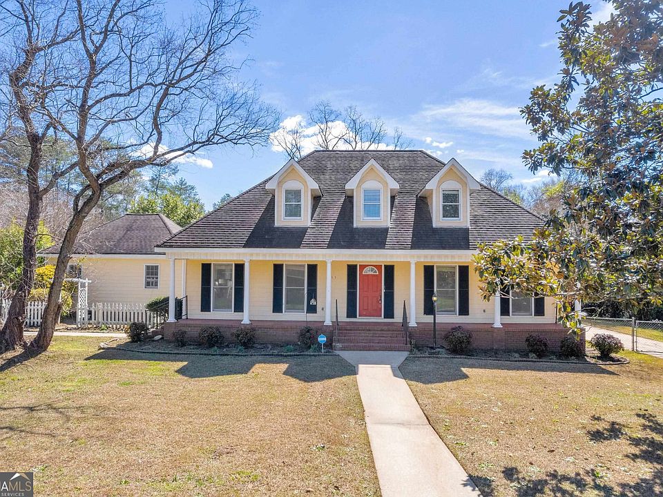 Come see this beautiful two story home in Warner Robins! The entire interior has been freshly painted and offers plenty of room with 2,278 sqft. The classic white kitchen offers plenty of counter space for meal prep and the warm gray tiled backsplash provides the perfect contrast. The primary suite is on the main level and offers a large bathroom with a double vanity. Each of the upper bedrooms is light and bright, generously sized to hold plenty of furniture. Relax under the covered porches overlooking the private lot. This property sits on a corner lot with an oversized two car garage, two driveways, and a fenced backyard with a shed. Come out and see this great home.