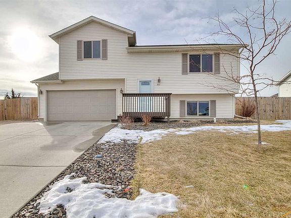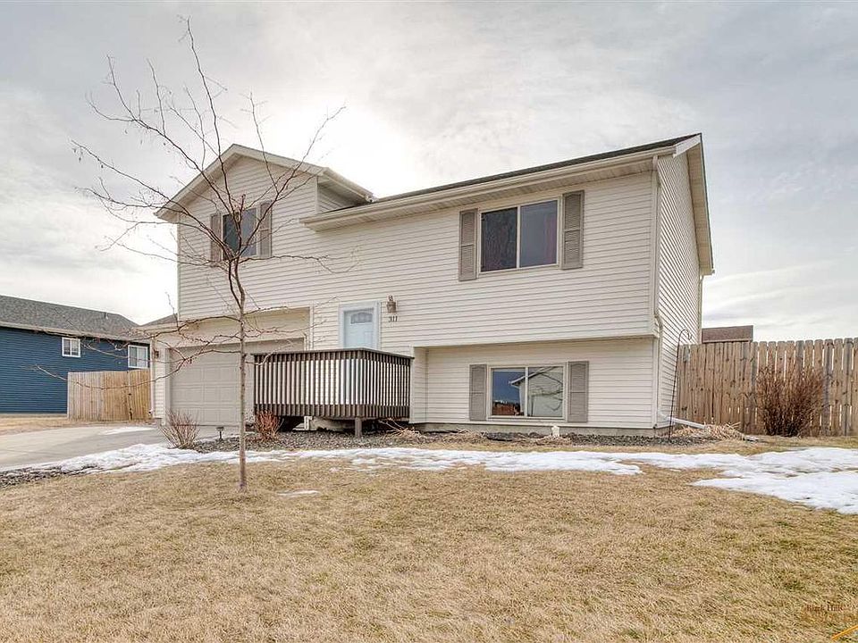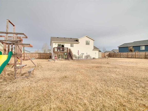 Charming tri-level home, large combination kitchen and dining space. Three bedrooms as well as lower level family room. Spacious backyard with privacy fence and overlooking deck. Garage for all your projects. Peaceful neighborhood conveniently located near Ellsworth AFB and community playground. Great View of 4th of July fireworks and neighborhood celebration. School bus stop within half a block. Well maintained with unique features. Take a look today, this one won't last long!