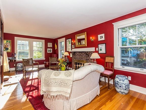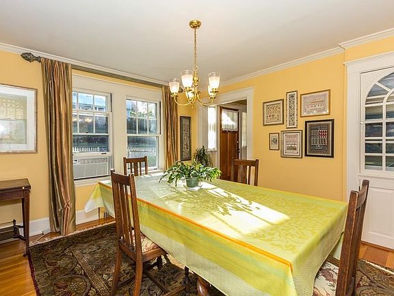 Exceptionally well cared for Colonial on large corner lot. Lovely gardens and outdoor spaces. Charming interior with nice details, including hardwood floors throughout. Large living room with a brick fireplace, formal dining with built-in china hutch. Nicely equipped kitchen with airy breakfast eating area and french doors leading to spacious multi-tiered deck and brick patio. Cozy den with piano. Convenient half bath on first level. Spacious and private master bedroom with 2 cedar closets. Two perfect sized additional bedrooms on the 2nd floor, both with cedar closets. Updated full bathroom with soaking tub. An insulated walk up attic for abundant storage. Ample head room in the partially finished, walk-out basement with a half bath, perfect for an exercise room or entertainment area. Floor plans available! One car garage and driveway. Don't miss!!