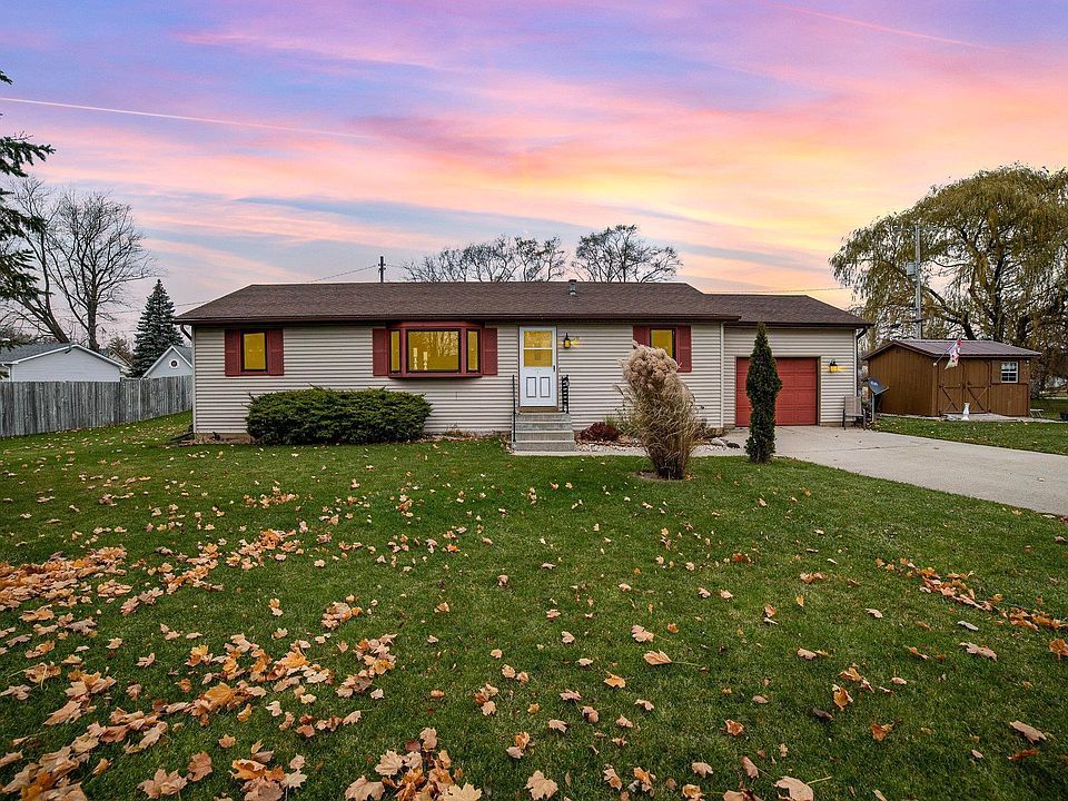 This immaculately-kept home is sure to impress! This ranch style home features 3 bedrooms, 2 bathrooms, vaulted ceilings in living room, and granite countertops in kitchen and bathrooms. It has been freshly painted and new carpet in all of the bedrooms. The yard is complete with a back porch, fenced-in portion of the backyard, and a new storage unit located in the front of the property. Perennials are planted throughout the landscaping and provide beautiful plants and views in spring and summer. Basement provides ample space for anyone wanting to finish off the space, and extensive amounts of storage.
