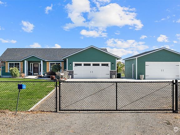 Nothing is missing at this property! 3 bedroom, 2 bath, 1940 SF home on 2 irrigated acres that is completely fenced! Inside you will find a open floorplan w/a vaulted great room. The kitchen has lots of cabinets/counter space that includes a big island with barnwood accents that has an eating bar. Enjoy the eastern views from the kitchen window. French door from dining rm to covered patio where you can enjoy wind-free BBQs. Nearby storage room has versatile use-office nook/extra pantry etc. Split bedrm layout. The lge primary bdrm has walk-in closet & lge bth w/shower, soaking tub & double sinks! Spacious utility room. FA & AC. Relax on front patio & enjoy the quiet neighborhood. Additional 24 X 24 shop!! Fruit trees & sprinkler system.