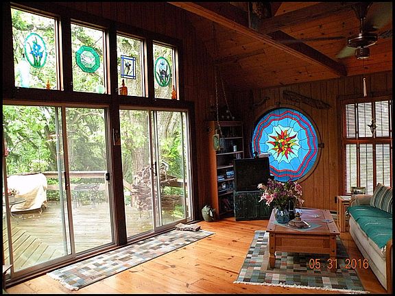 Charming cottage is a one of a kind tree top retreat. Cherished by one family since the 1940's-legend has it that Aunt Mizpah bought it from a local bootlegger! Stunning 1 acre parcel is nestled in the trees with lush areas of cleared green space. Updates include insulated walls, new ceiling/roof & remodeled kitchen & bath. Current heat source is a huge stone nat frplc & 2 electric baseboards. Enjoyed as a 3 season home-one could add ductwork & convert. Cabin like feel is cozy & intimate yet spacious w/a North Woods Flair. Hear the bells of St. Johns peal daily-while you relax in tranquility.