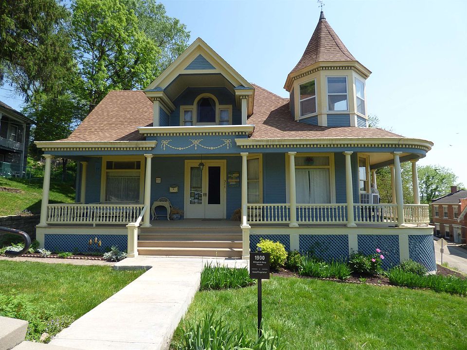 Stunning elegant Victorian home perched high on Hill Street in picturesque Galena. Enjoy views as far as Horseshoe Mound plus Grant Park and downtown Galena, including the spectacular Galena fireworks display, from the grand turret in the upper level of this beautiful home. Walk out the front door to a stately stairway leading to Prospect Street on your way to the downtown area. Relax on the wrap-around front porch while enjoying the spectacular views. When entering the home, you will be greeted by a welcoming foyer which leads you to the light and airy front room, onto the parlor/family room with a private fireplace, then to the elegant formal dining room and lastly to the quaint warm and inviting kitchen. All the rooms have an abundance of oversized windows, many with stained glass, ornate woodwork and some with beautiful wood floors. There are two bedrooms, including a master bedroom, full bath, half bath and laundry room on the main floor as well. Covered porches are accessed both from the family room and the kitchen. The upper level boasts the grand turret, spacious living/dining/kitchen area along with 2 bedrooms, a full bath, a bonus room and of course, lots of storage. This charming Victorian home is a wonderful place to truly enjoy all the Galena experience. Don’t miss out on the opportunity to own this amazing historical piece of Galena’s history and the panoramic vistas it has to offer.