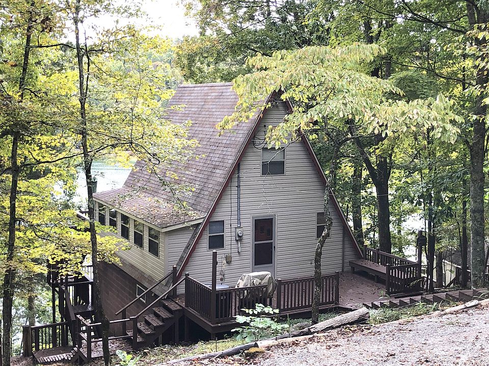 Been searching for that affordable lakefront cabin? Look no further. Nestled in the popular Flat Hollow Marina community, this quaint cabin is lake front with gorgeous views and not a bad walk to the water. Property also comes with additional lots across the road for extra parking. Home is on a shared well but public water is available at the road. Main level of home features a small bedroom, full bath, great room with cathedral ceiling. Above is a loft that comfortably sleeps 4. The views from this level are impeccable. The lower level (access from outside) has a den/recreational area (currently used as sleeping quarters), another bedroom, full bath and laundry and a covered deck. Take the few steps to the water and that's it........ your on Norris Lake without breaking the bank.