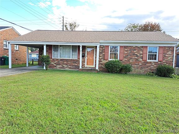 This beautiful all brick, 3 bedroom, 1 1/2 bathroom ranch style home features a carport, concrete driveway and a newer dimensional shingled roof. It also has a newly installed Trane Heat Pump / natural gas heating unit, new Electric Stove and a new Microwave Oven. The house has been freshly painted and updated inside & out. It also features a private fenced in back yard. This home is located close to TEMPLE AVE, I-95, I-85, FORT GREGG-ADAMS, SOUTHPARK MALL, VA STATE UNIV., and an abundance of other stores, Pharmacies, & restaurants nearby. About a 25 minute commute to Richmond.