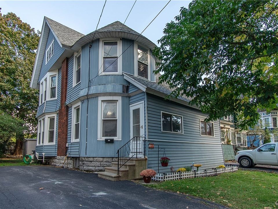 This charming 2-story Victorian home boasts 4 bedrooms, 1.5 baths, and an inviting open layout. The enclosed front porch welcomes you through beautiful wooden front doors, revealing hardwood floors, original woodwork, and classic moldings throughout. The stunning wooden staircase leads to the second floor, where you'll find 4 spacious bedrooms, a full bath, and access to a full storage attic. With a full basement and first-floor laundry, this home offers both charm and convenience. Located near shopping, restaurants, Thompson Park, playground and just 20 minutes from Fort Drum, it's the perfect blend of classic beauty and modern living! Seize the opportunity to own this beautifully maintained, spacious home at an unbeatable value. With its timeless charm, modern conveniences, and prime location, it won’t last long! This charming Victorian home is an incredible value, but please note the sellers are active military and cannot close until February due to relocation orders. Seize this opportunity now and plan for a February move into this beautiful home!