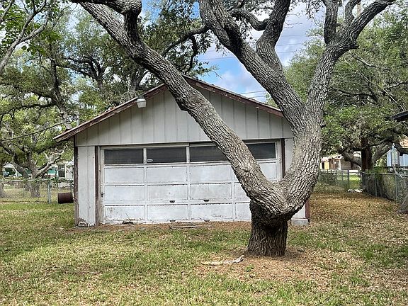 Over sized lot in Peninsula Oaks subdivision in beautiful Rockport TX! City water & sewer is readily available and electricity is in place. There is an existing working well for irrigation. Fully fenced beneath a canopy of mature live oaks The detached garage on property serves as lockable storage and could be brought back to life with a little TLC. The land is located within city limits, so the new owner has the opportunity to replace the existing structure with a brand new mobile home ONE time. The existing mobile has no value, this sale is property value only. For your own safety, do not attempt to enter the mobile home.