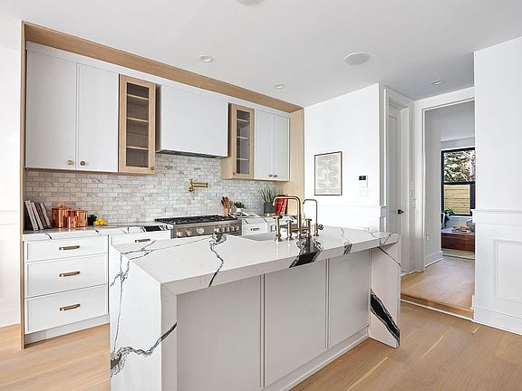 Combining the best of the old and the new, no attention to detail was spared from the outside walls in. Enjoy new windows, doors, fa ade, central heating and cooling, hardware, electric, plumbing, and all new kitchens and baths. Enter into a loft-like main floor and enjoy a chef's kitchen and space for dining and living. A full bathroom on this floor flows allows you to use the back bedroom on this level for either a guest room, home office OR an extension of your living room, depending on your needs. Or make it a flex space for your changing needs! The charming terrace/garden space off this room easily accommodates a grill and furniture, and allows outdoor living with minimal work, unless your green thumb calls and you want to add planters. The neighboring lush green trees provide just enough nature to allow you to feel like you are a world away from urban life without lifting a finger.